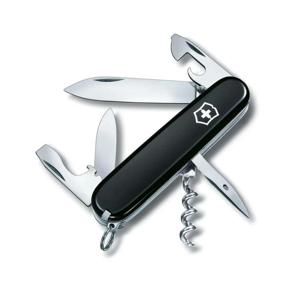 Функции: Голямо острие; малко острие; комбиниран инструмент 1: отварачка за бутилки, плоска отвертка, зачистване/огъване на кабели; комбиниран инструмент 2: отварачка за консерви, малка отвертка; тирбушон; шило с конусовидно свредло/разширител, клечка за зъби; пинсети; халка за ключодържател или верижка.