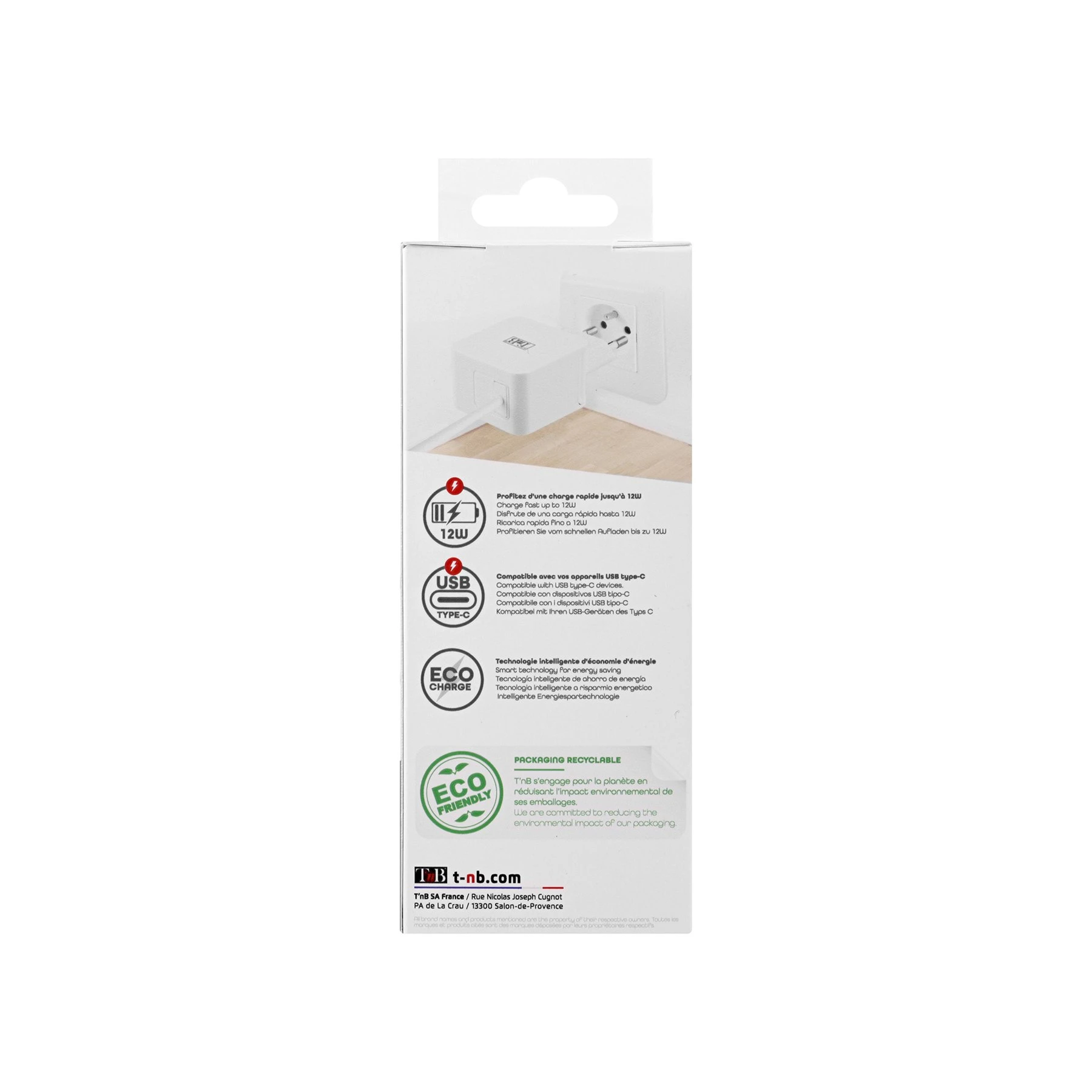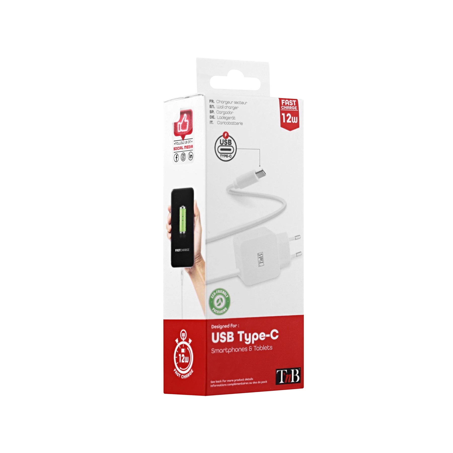 Зарядно устройство TNB, с кабел, USB-C, 2.4A, 1 m, бяло, USB Type-C