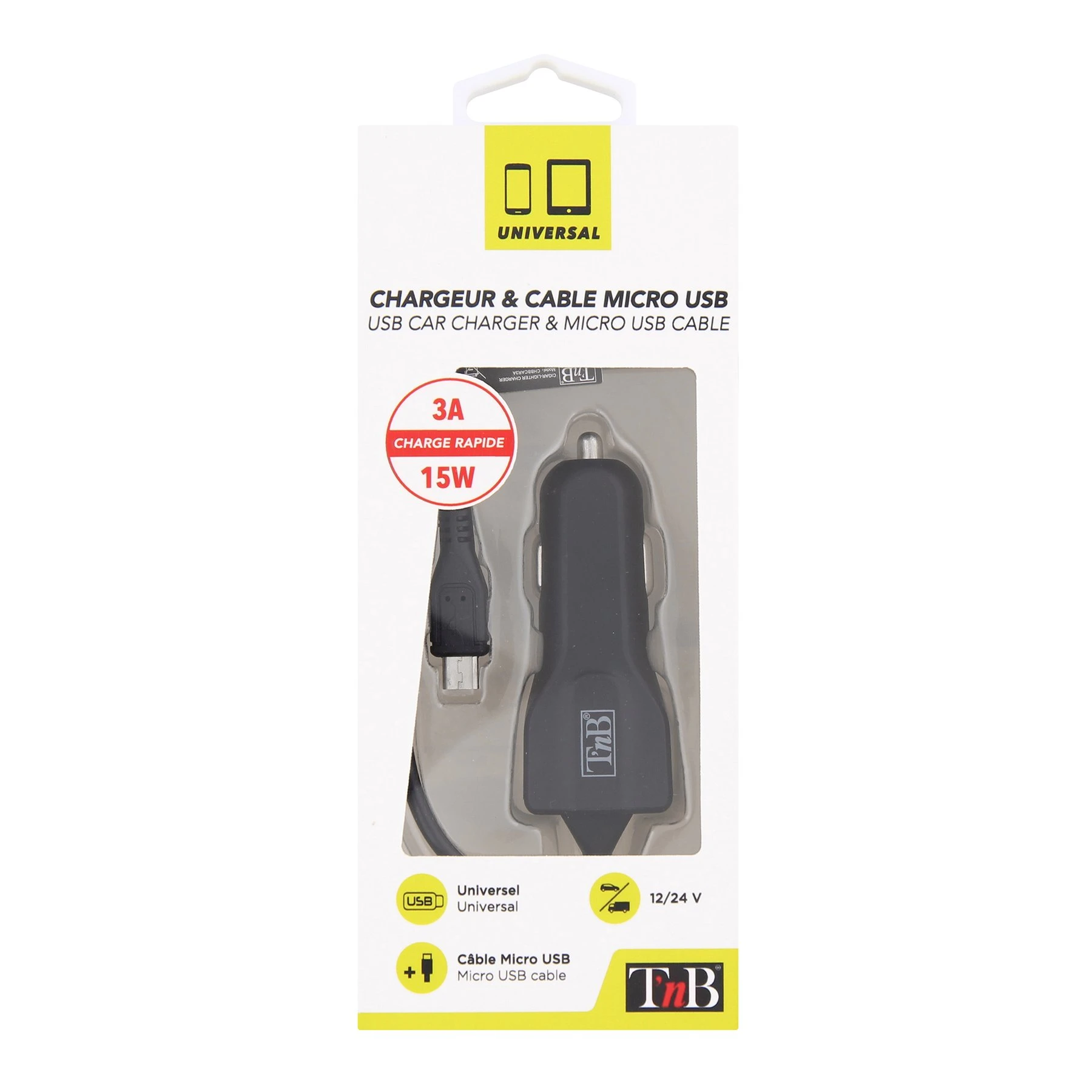 Зарядно за кола TNB, с кабел, Micro USB, дължина 1.1 m