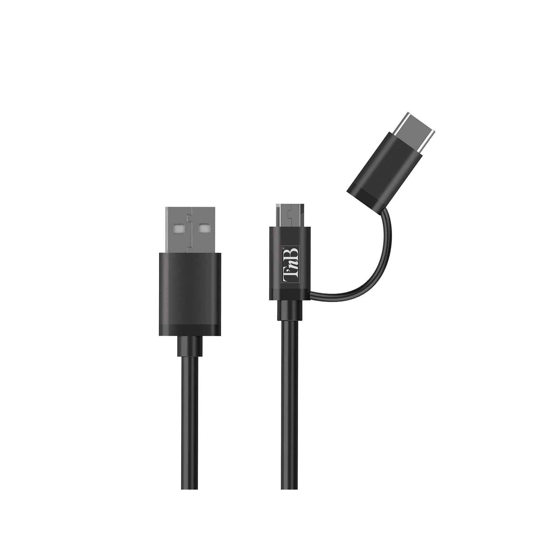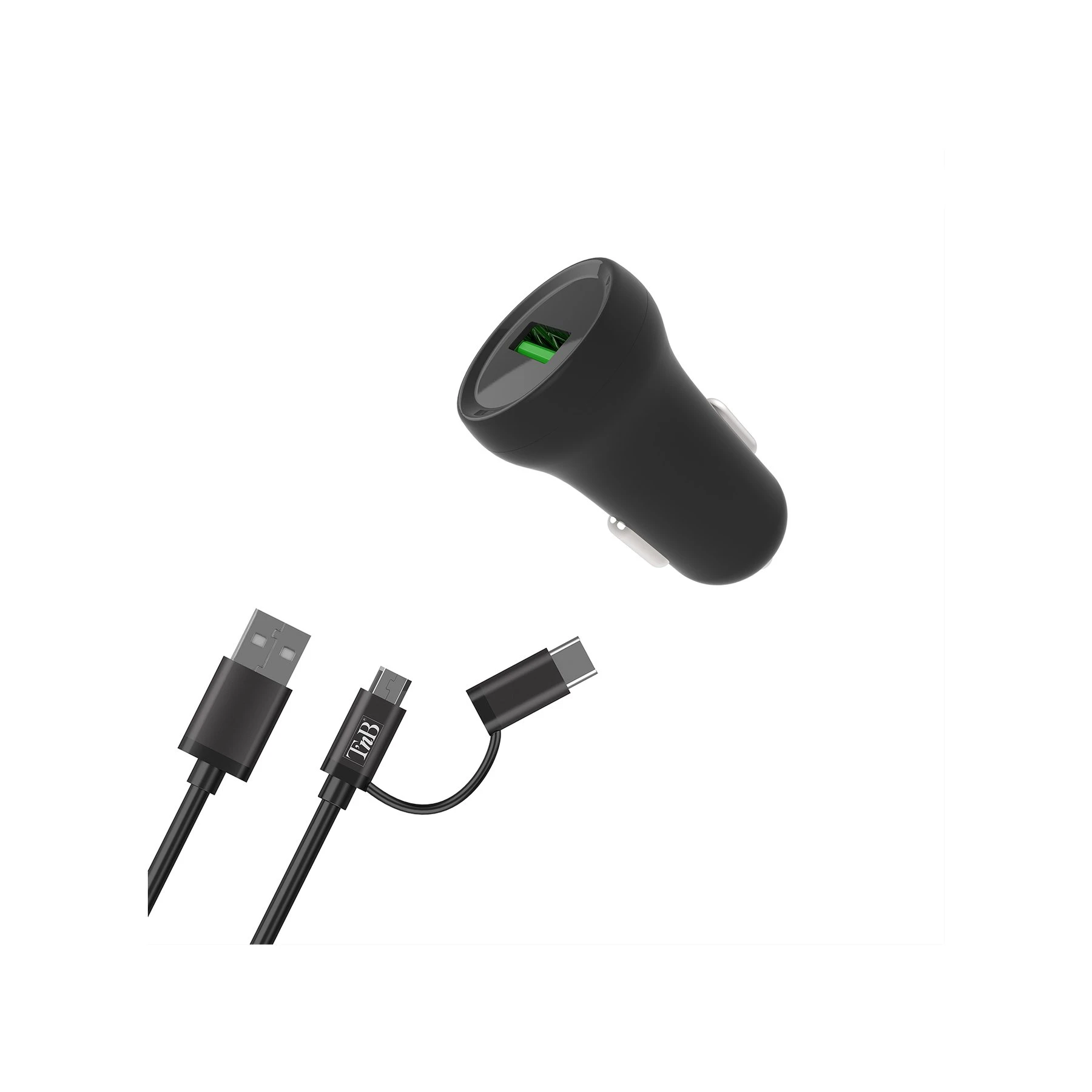 Зарядно за кола TNB, USB Type-C, micro USB кабел, USB Type-A, дължина 1 m, черно