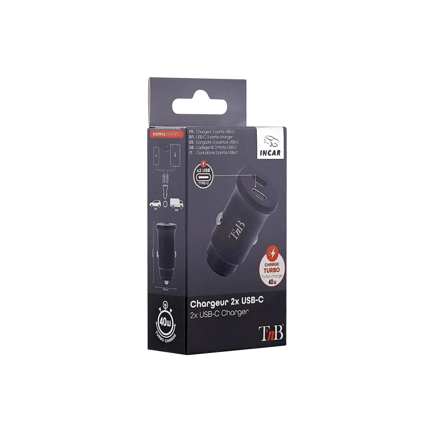 Зарядно за телефон за кола TNB, 2 х USB Type-C, 40 W, черно