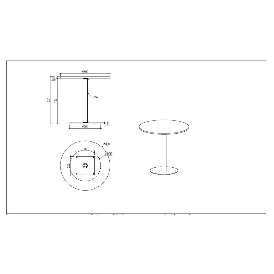 Заседателна маса RFG Barry, 800 х 800 х 750 mm, кръгъл плот, ПДЧ 25 mm, метална основа, бяла